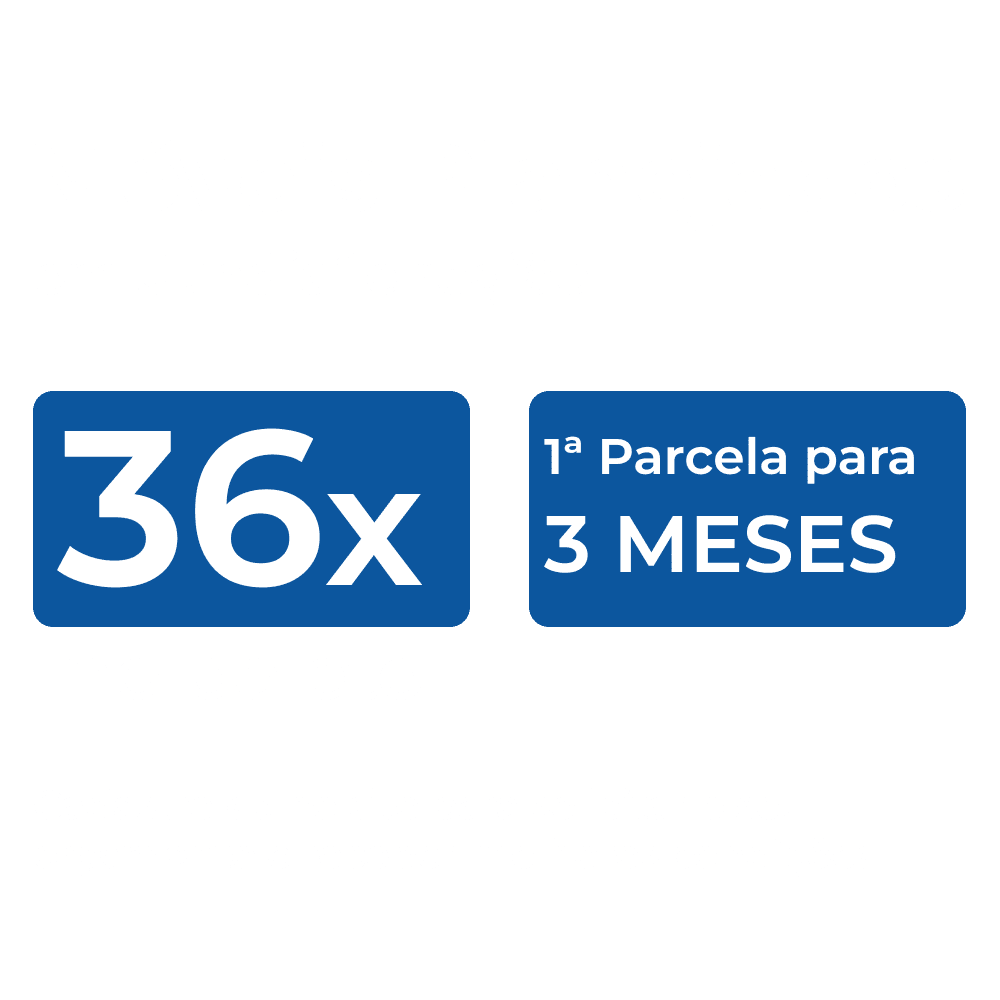 Facilidade no pagamento, parcelamento no boleto em até 36x e 1ª parcela para 3 meses.